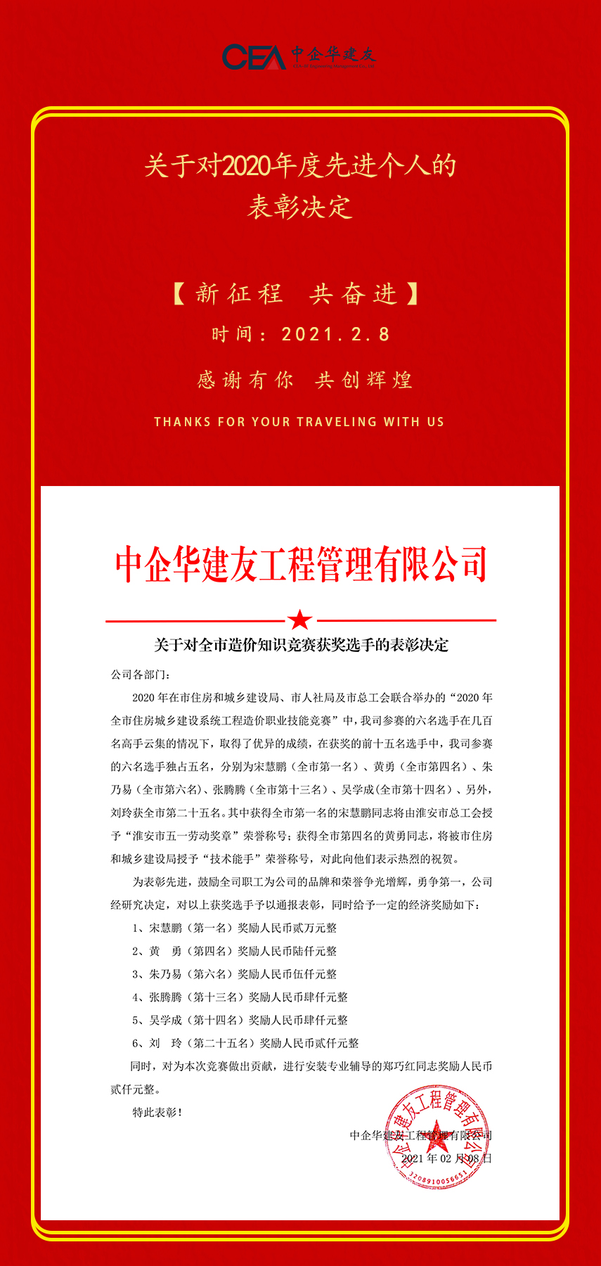 关于对全市造价知识竞赛获奖选手的表彰决定